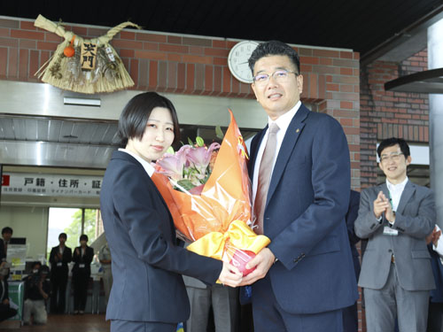 同支店は近鉄益生駅から徒歩3分ほどの場所にあり、昭和48年にオープンした。窓口営業開始前のオープニングセレモニーで、道廣剛太郎頭取は「長年、地域の皆様に支えられてきた。引き続きご支援、ご愛顧を賜りますようお願いします」とあいさつ。関係者とともにテープカットをして、新たな門出を祝った。